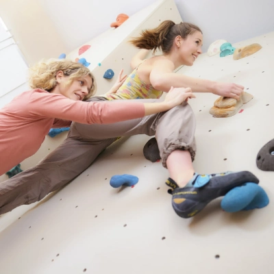 Unter therapeutischem Klettern versteht man eine Therapieform, bei der an der Kletterwand in geringer Höhe Koordination und Stabilisation des gesamten Körpers in einer geschlossenen Kette geschult werden. Dabei ist die Kletterwand ein Garant für Motivation, Konzentration und Spaß bei Jung und Alt.